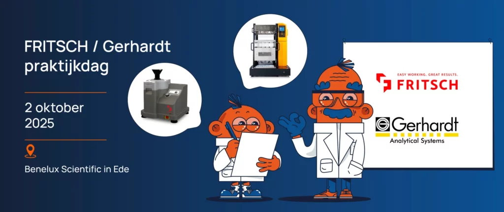 Op donderdag 2 oktober organiseert Benelux Scientific in Ede de Gerhardt & FRITSCH praktijkdag, een dag rond monstervoorbereiding en analytische toepassingen. Tijdens dit event krijgt u inzicht in technieken zoals Kjeldahl, Soxhlet, Dumas en vezelanalyse en kunt u hands-on aan de slag met monstervoorbereiding.